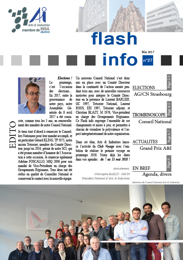 Découvrez le nouveau Flash Info n°27 d'Arts & Industries, avec le trombinoscope de notre Association !