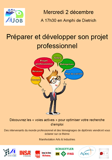 Arts & Industries vous propose d'y voir plus clair avec cette manifestation. Des informations sur l'insertion professionnelle des Diplômés, des intervenants du monde professionnel : Schaeffler France, l'APEC, des témoignages de Diplômés.
